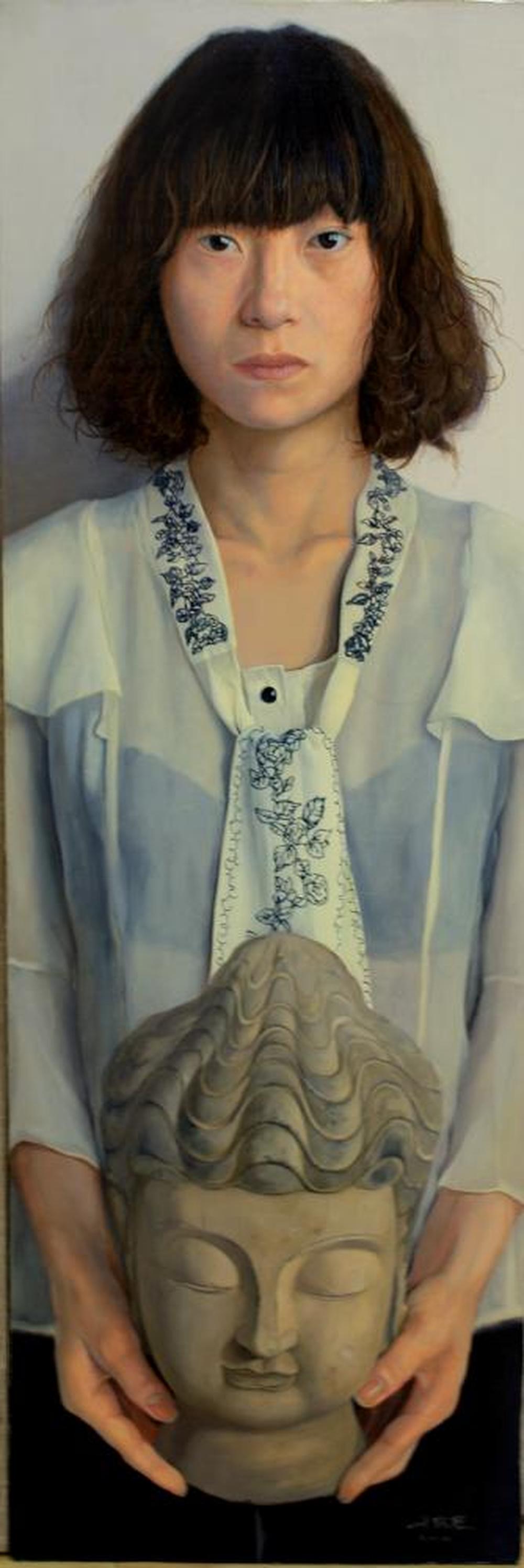 抱佛头的女青年